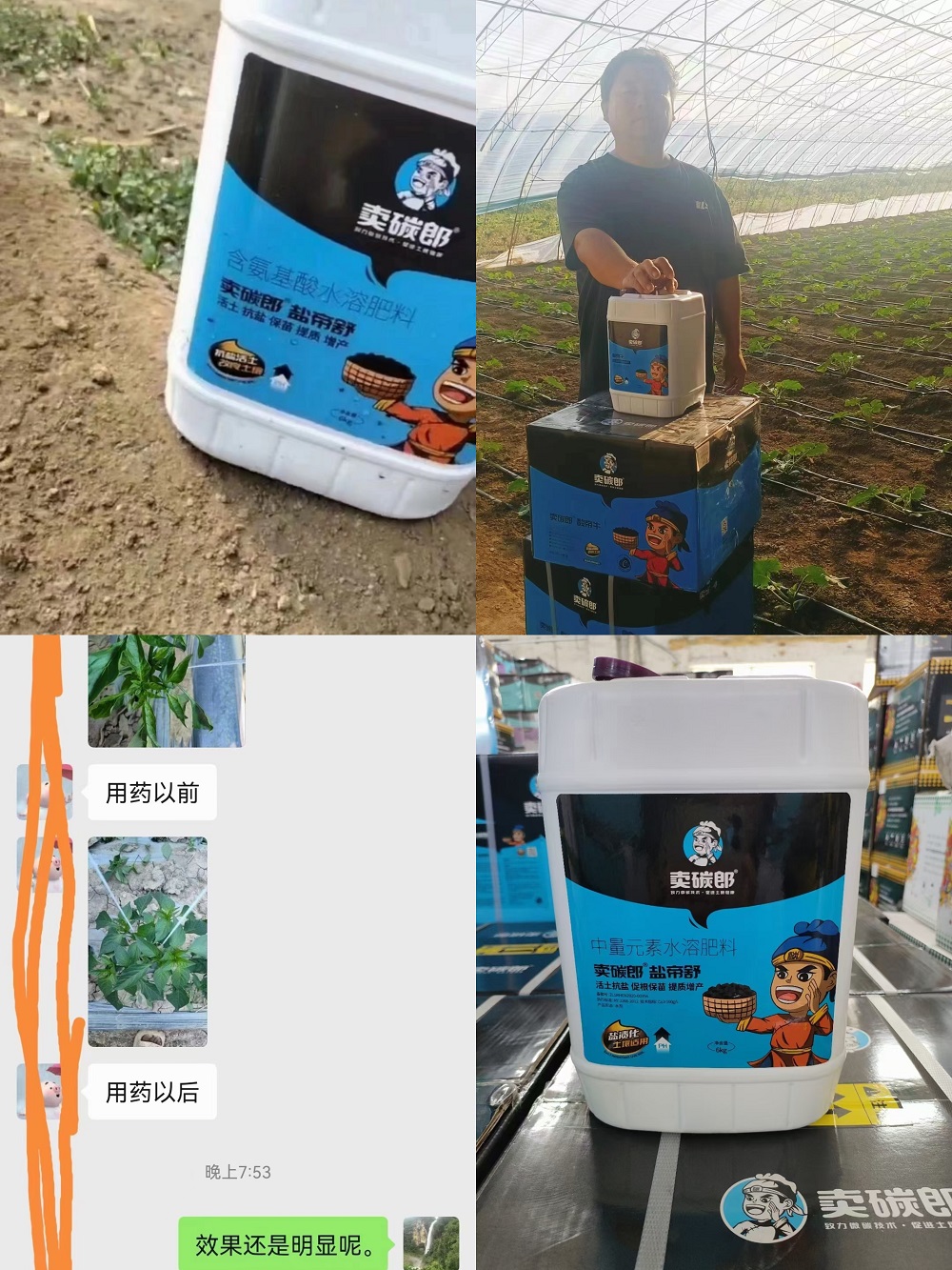 此外卖碳郎的盐帝舒就是一款治理盐渍化很不错的产品,上市就取得很好的口碑,它对改善土壤盐渍化效果明显,适用于果蔬区盐渍化板结、土传病害严重造成的品质下降,减产地块。